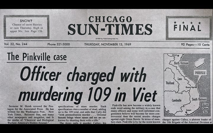 The cruelty which animates the current presidential administration — its reflexive defense of an ICE officer that murdered an American Citizen in Minnesota last week, the way government officials lie so quickly and brazenly, slandering the victim and valorizing her murderer — it all has an eerie resonance with the American government’s refusal to hold William Laws Calley Jr. accountable for the My Lai massacre in any meaningful way.